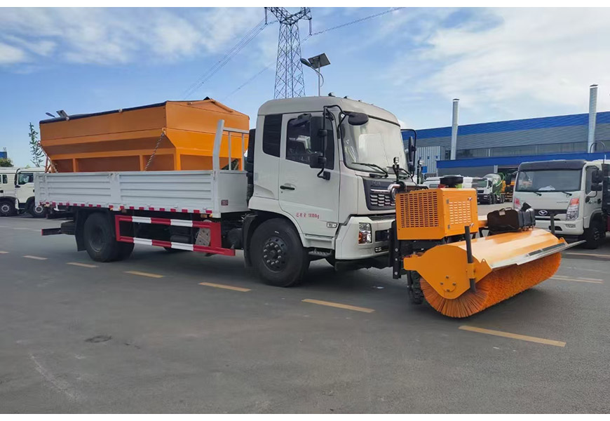 | 上裝配置 | 整體避障除雪鏟,夜間工作燈,車取力重型除雪鏟(左右雙液壓驅(qū)動)可搭配8立方或者10立方融雪撒布機(jī)(獨立柴油動力,鏈條刮板輸送,采用V型料倉,頂部帶防雨罩,折疊式不銹鋼撒布盤)3-3.5米雪鏟、3-3.5米雪鏟及撒布機(jī)均采用集成按鍵駕駛室操作。 | ||