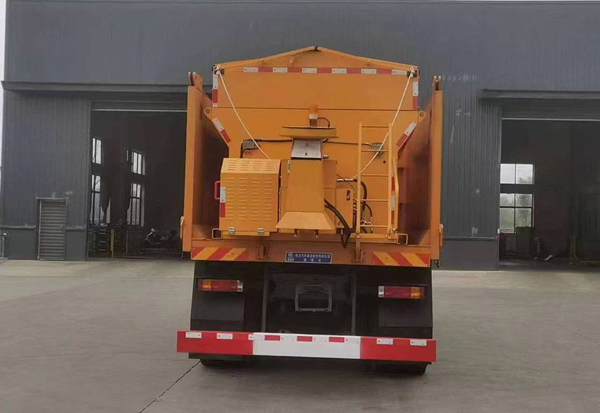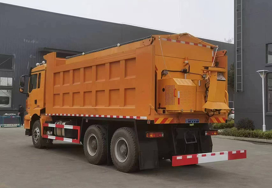 | 上裝配置 | 箱體采用優(yōu)質(zhì)碳鋼板,標(biāo)配10立方撒布機(jī)也可以選裝12立方,不銹鋼撒布機(jī)甩盤,撒布盤直徑550mm,撒布機(jī)采用 V 型料倉,結(jié)構(gòu)簡單可靠,使融雪劑自動(dòng)落料,出料完全,無殘留,箭頭燈、篷布、過濾網(wǎng)、后爬梯。加裝3.5米雪鏟,可切換3.5米除雪滾刷(滾刷可選自帶動(dòng)力或者液壓取力)。 | ||