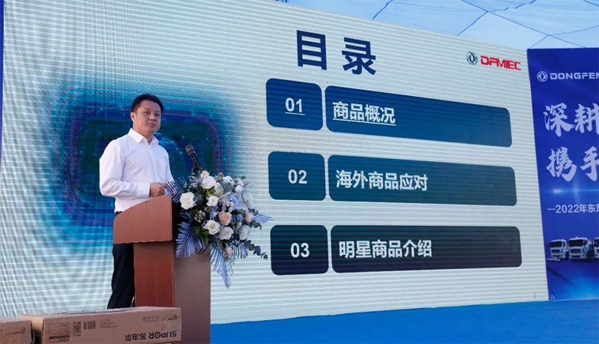 中國東風汽車工業(yè)進出口有限公司總經(jīng)理助理楊濤在活動中,做了重要講話。他強調(diào),首先要感謝程力集團一直以來,與東風公司全面戰(zhàn)略合作和大力支持,并向參加推薦會的來賓與銷售經(jīng)理表示誠摯的問候。