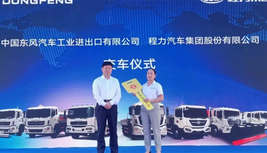 隨后,中國東風汽車工業(yè)進出口有限公司商用車海外營銷部中重型產(chǎn)品總監(jiān)吳永剛與程力集團國際市場部業(yè)務經(jīng)理陳葦舉行了交車鎖匙牌授牌儀式。
