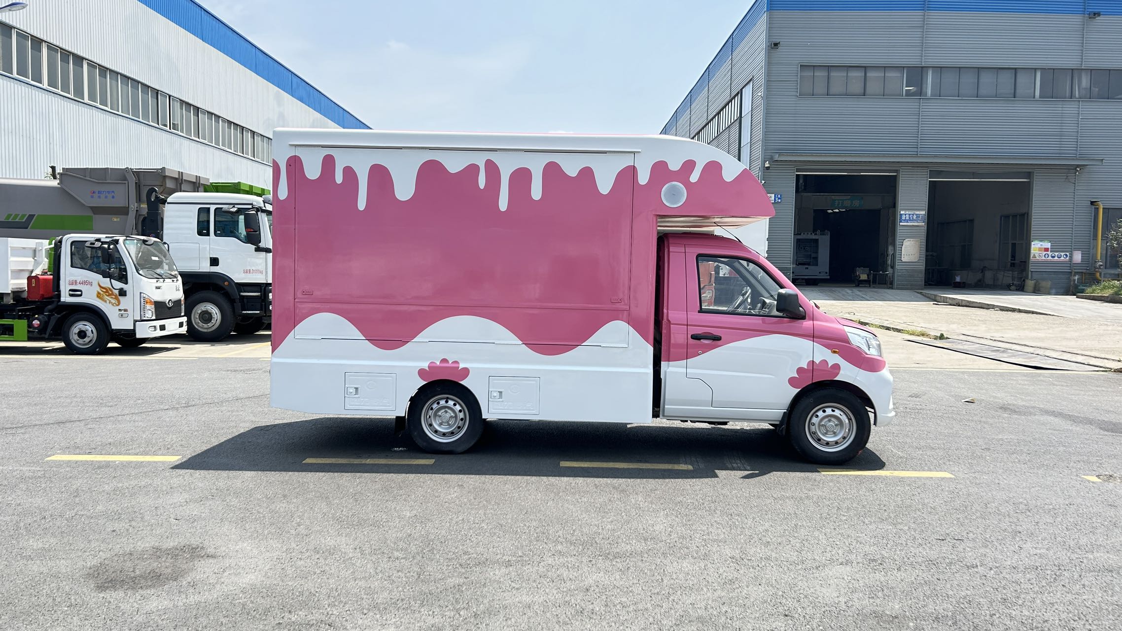 | 上裝配置 | 1,箱體材質(zhì):矩形方管骨架,冷板蒙皮結(jié)構(gòu),翻板采用內(nèi)外彩鋼板,中間高性能保溫板,側(cè)板整體復(fù)合,輕量化,保溫隔熱。整體車身顏色為白色,可定制車身各種顏色彩條拉花,或各種噴涂樣式,(選裝內(nèi)部不銹鋼飾面板) 2,箱體結(jié)構(gòu): (1)箱體鴨嘴額頭設(shè)計,帶儲物功能。 (2)箱體兩側(cè)上翻板,帶下翻吧臺。 (3)地板為防滑鋁花紋板,箱體裙邊包圍,帶檢修艙門,工具柜。 | ||